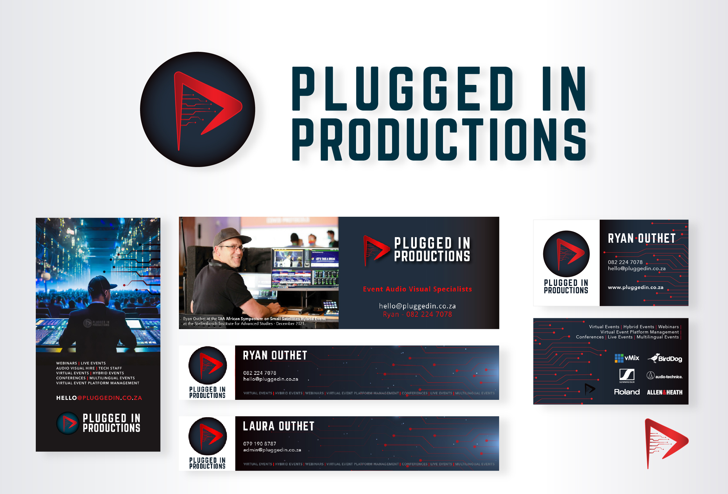 Brand identity with multiple assets and a comprehensive website created for Plugged In Productions.